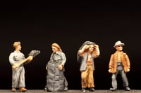 Figures are white metal cast, designed to suit 4mm OO/EM/P4 gauge, 1 to 76 scale and are 23mm high (scale ht 5’9” to top of head). The figures are generally sold in packs of 4 castings portraying 4 different figures.